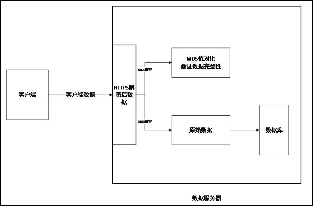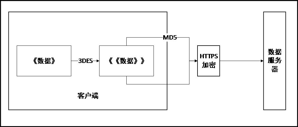 4、最后將[(3DES數(shù)據(jù))+私鑰(MD5(3DES數(shù)據(jù)))]通過(guò)HTTPS加密后一起傳給服務(wù)器。